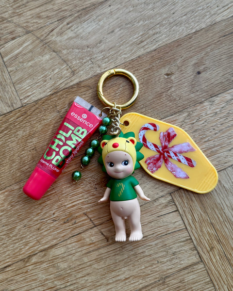 Sonny Charms est un porte-clés décoratif fait main, créé à partir d’une figurine neuve soigneusement intégrée dans une composition artisanale unique.